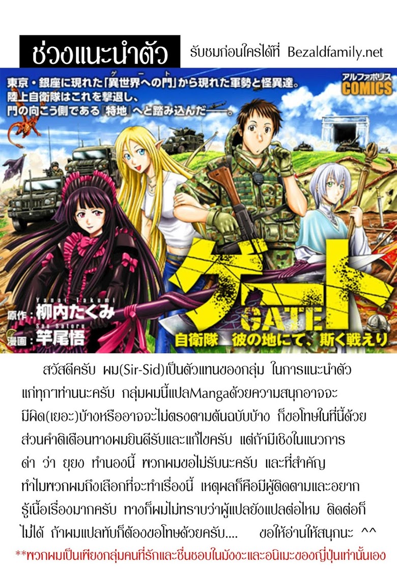 อ่านการ์ตูนเรื่อง Gate Jieitai Kanochi nite Kaku Tatakaeri แปลไทย ทุกตอน อัพเดทตอนล่าสุด