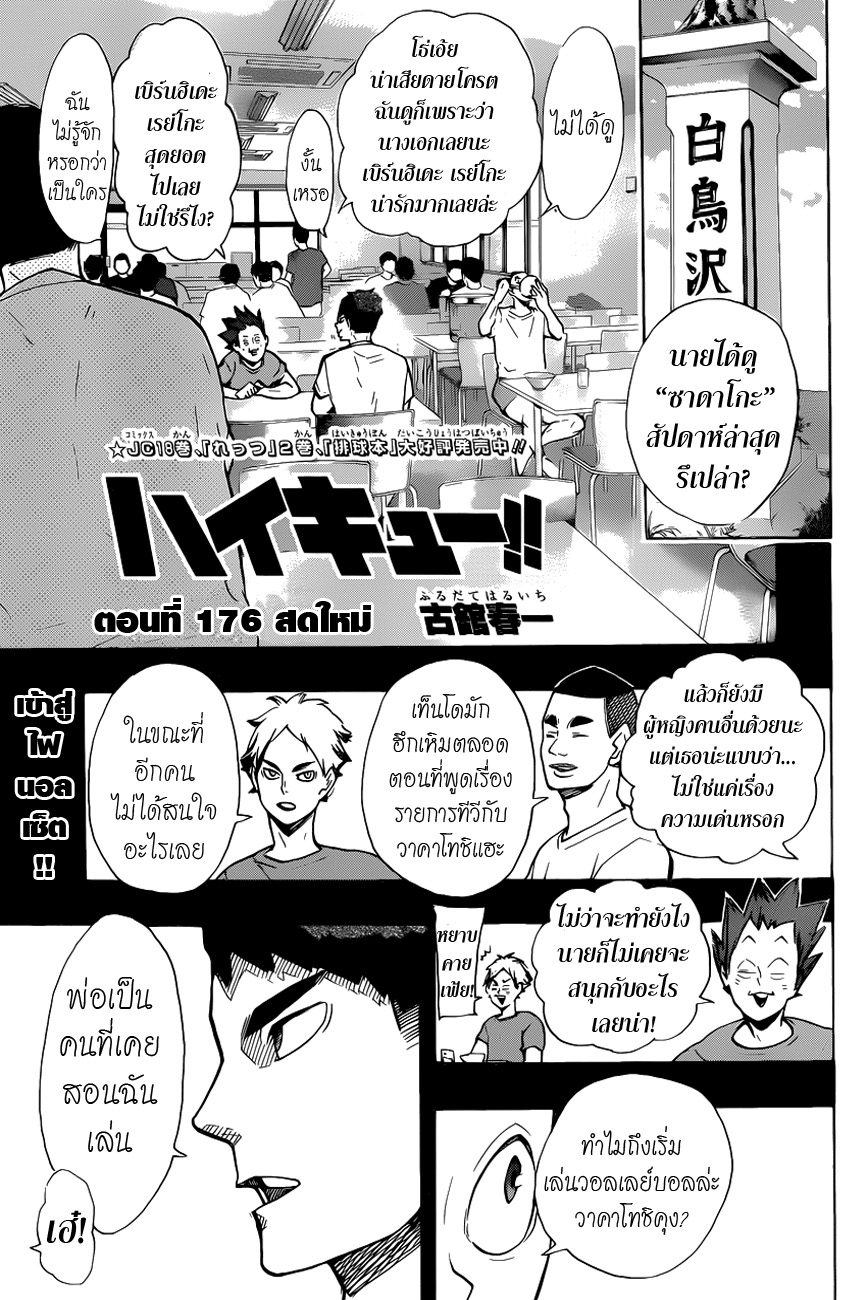 อ่านการ์ตูนตอนล่าสุด เรื่อง Haikyuu!!ตอนที่ 176 ได้ที่เว็บ Makimaaaaa.com makimaaaaa | มากีม้าาาาาแปลมังงะ แปลไทย อ่านมังงะออนไลน์ . มังงะ Haikyuu! อัทเดทอยู่ตลอดที่เว็บ Makimaaaaa.com makimaaaaa | มากีม้าาาาาแปลมังงะ แปลไทย อ่านมังงะออนไลน์ . อย่าลืมอ่านการ์ตูนอื่น ๆ มีอัพเดทตลอดเวลา . รายชื่อมังงะ ได้ที่ makimaaaaa | มากีม้าาาาาแปลมังงะ แปลไทย อ่านมังงะออนไลน์ โปรดคลิกที่เมนู เลือกรายชื่อมังงะการ์ตูน มีให้อ่านมากกว่า1พันเรื่อง