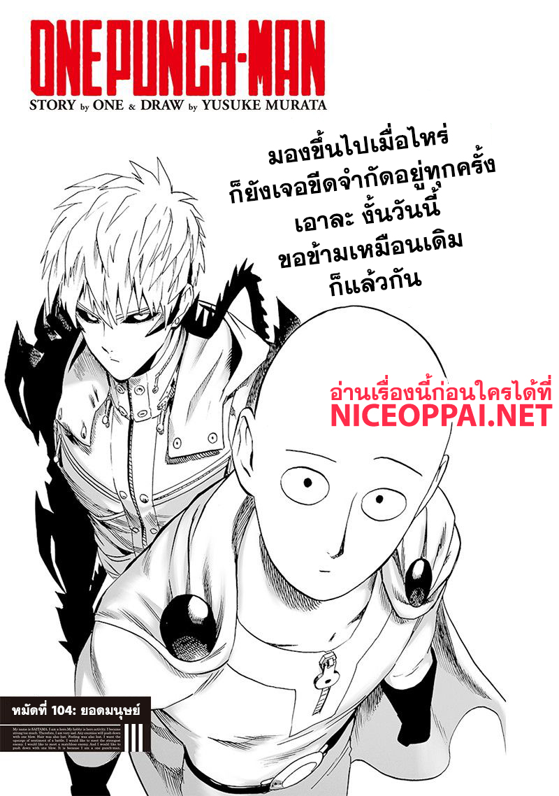อ่านการ์ตูนตอนล่าสุด เรื่อง One Punch-Manตอนที่ 104 ได้ที่เว็บ Makimaaaaa.com makimaaaaa | มากีม้าาาาาแปลมังงะ แปลไทย อ่านมังงะออนไลน์ . มังงะ One Punch Man อัทเดทอยู่ตลอดที่เว็บ Makimaaaaa.com makimaaaaa | มากีม้าาาาาแปลมังงะ แปลไทย อ่านมังงะออนไลน์ . อย่าลืมอ่านการ์ตูนอื่น ๆ มีอัพเดทตลอดเวลา . รายชื่อมังงะ ได้ที่ makimaaaaa | มากีม้าาาาาแปลมังงะ แปลไทย อ่านมังงะออนไลน์ โปรดคลิกที่เมนู เลือกรายชื่อมังงะการ์ตูน มีให้อ่านมากกว่า1พันเรื่อง